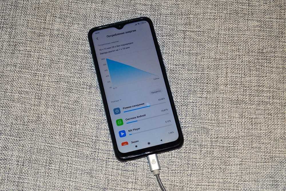 Аккумулятор емкостью 5020 мАч обеспечивает весьма продолжительное время работы смартфона. При умеренном использовании полного заряда батареи Redmi 9 хватит примерно на два дня или даже больше, а видео с разрешением HD при яркости в 150 нит может проигрываться более 16 часов. В игре PUBG при такой же яркости можно смело рассчитывать на 9 часов работы, а в тесте PC Mark герой обзора уже при яркости в 200 нит продержался 9 часов 32 минуты, что не рекорд, но это объясняется высоким разрешением экрана.