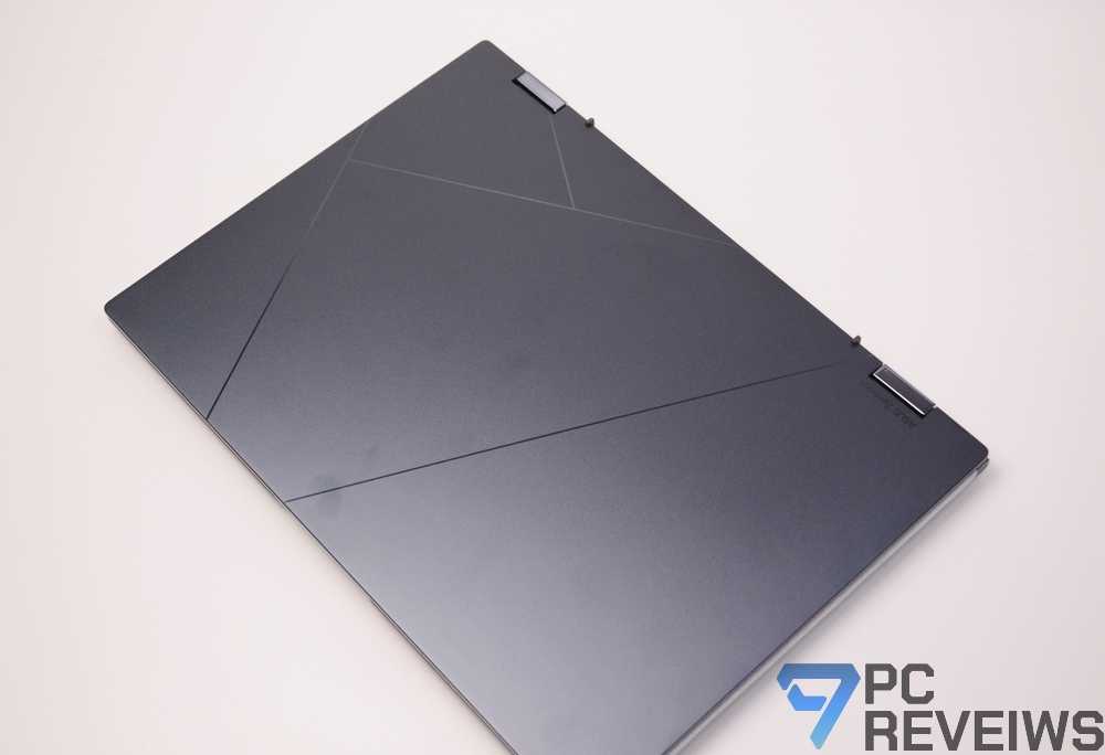 Верхняя панель ноутбука украшена лишь несколькими глянцевыми линиями на фоне матовой краски основной поверхности, которые образуют собой фирменный логотип.