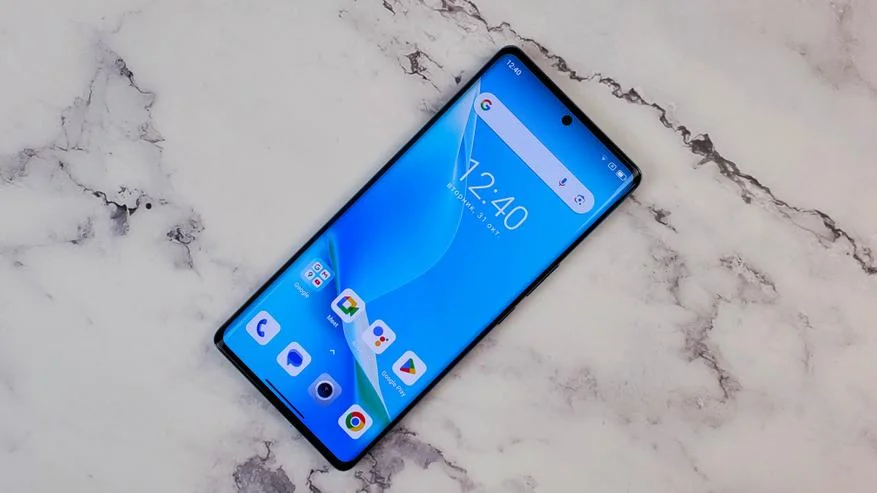 Что касается рамок, то они достаточно скромные, особенно по бокам. Фронтальная камера аккуратно врезана по центру в виде точки, оптический сканер отпечатков расположен под экраном. Точность и скорость распознавания отпечатка высокие. Управление смартфоном осуществляется при помощи жестов, либо наэкранных кнопок, которые можно включить в настройках.