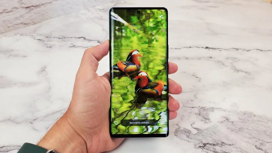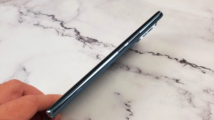 С лицевой стороны смартфон выглядит привлекательно благодаря изогнутому дисплею, который сейчас принято называть экран — «водопад». С практичной точки зрения это никакой пользы не несет, но выглядит очень классно. Первыми такие дисплеи стали ставить Samsung, после чего идею подхватили и другие бренды. До недавнего времени в недостатки к таким дисплеям относили сложность поклейки пленок и невозможность использовать защитные стекла. Сейчас же есть доступные гидрогелевые пленки, которые способны принимать любую форму и обладают свойствами регенерации (восстанавливая царапины на поверхности). Пользоваться смартфоном приятно, его буквально не хочется выпускать из рук — все эти закругления дают очень интересный опыт в тактильном плане. Благодаря соотношению сторон 22:9 смартфон не слишком широкий и большинство действий удобно выполнять одной рукой.