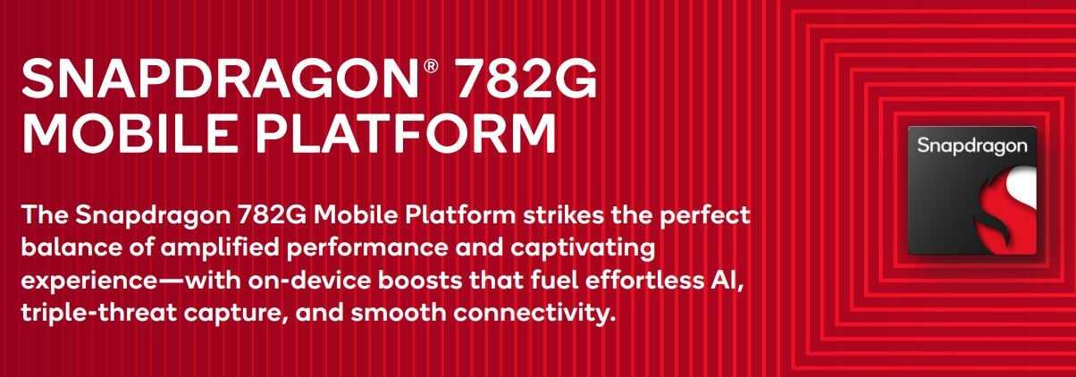 The chipset can also drive FHD+ screens at a 144 Hz fast refresh rate and 4k screens at a standard 60 Hz refresh rate. The new chip also supports 16 GB LPDDR5 RAM and UFS 3.1 storage configuration. The 782G brings Quick Charge 4+, which can charge up to 50% in 15 minutes. It is based on a 6 nm architecture like the SD 778G+.
