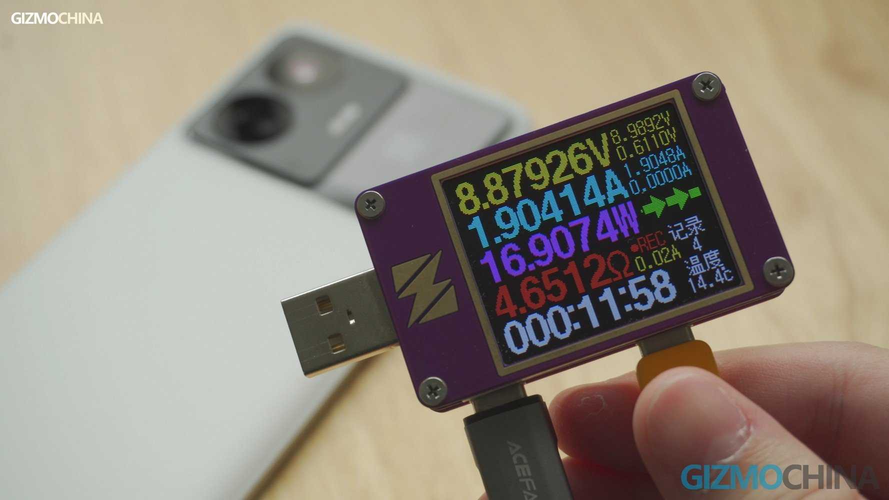 Let’s talk about this charger. Although it is much smaller than we expected, it is not light, weighing about the same as a phone. Charging protocols are not that much, in addition to SuperVOOC 240w, it also supports 65w of PD and QC 3.0 protocols, which is the regular level of the charger in the box.