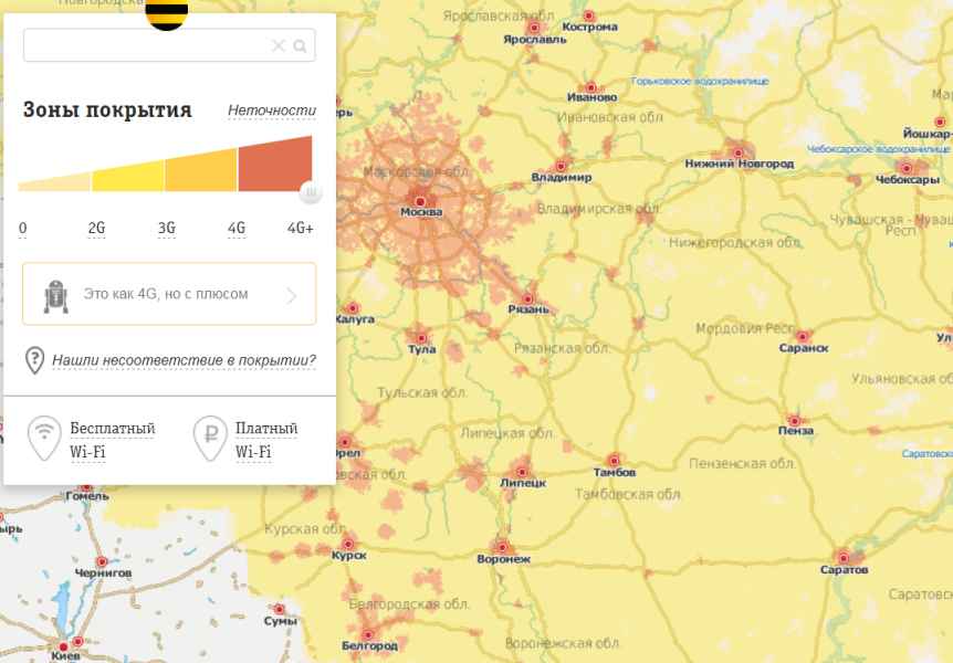 Карта покрытия Beeline 2G, 3G и 4G