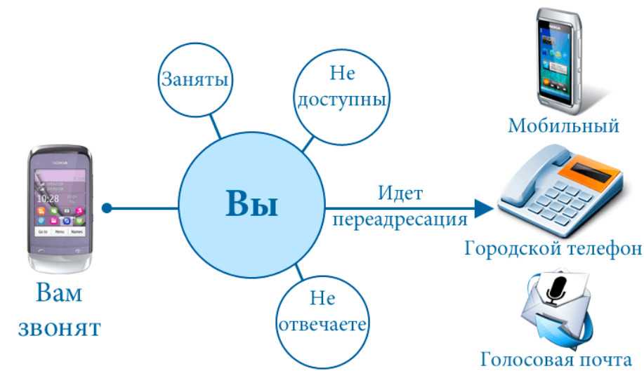 При таком сценарии звонки на стационарный или мобильный номер будут переадресованы, если ваш телефон занят.