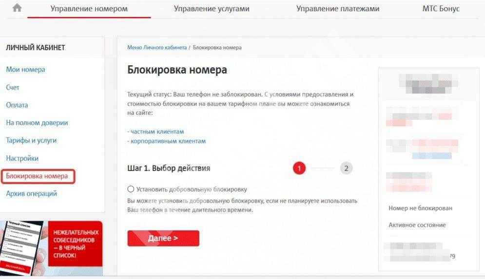 МТС — личный кабинет.Сведения о том, как заблокировать номер МТС
