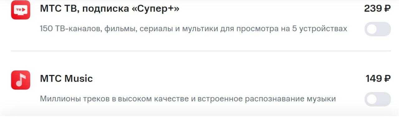 НЕТАРИФ предлагает абонентам МТС гибкую настройку, благодаря которой еще на этапе подключения можно выбрать пакет услуг и отдельные подписки на стриминговые сервисы. Тем не менее, в линейке продуктов оператора существуют и другие опции, способные работать в связке со специальным предложением: