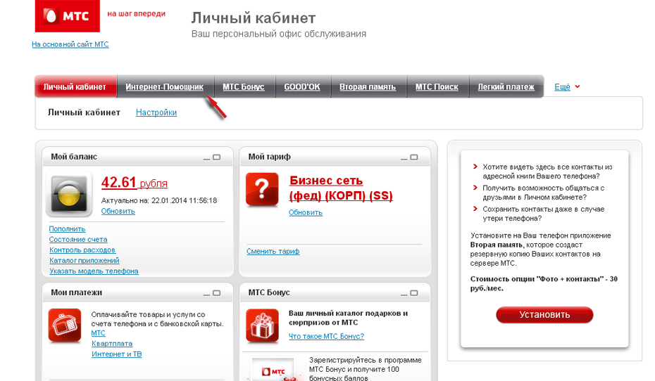 Сайт МТС: