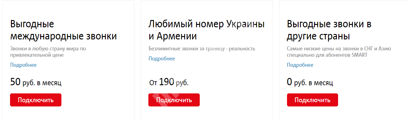Действует предложение на всех тарифных планах и доступно как частным лицам, так и корпоративным клиентам. Позволит не только сэкономить на международных соединениях, но и выгодно звонить на Родину, если пребываете за ее пределами.