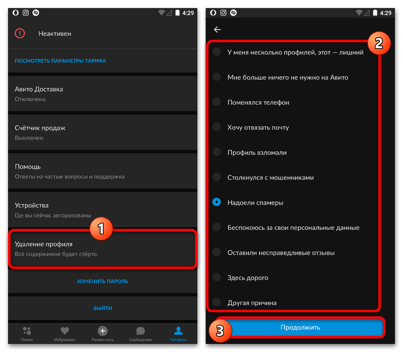 По части настроек мобильный клиент торговой площадки практически полностью повторяет веб-сайт, позволяя как удалить конкретный номер с попутным добавлением нового, так и попросту избавиться от аккаунта. Упрощенная версия ресурса при этом не отличается от официального приложения, и потому не будет рассматриваться в качестве отдельного варианта.