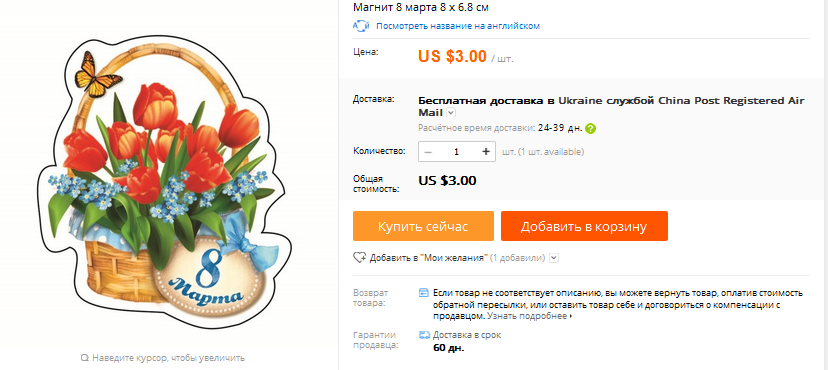 Сувенирный магнит «8 марта» с Алиэкспресс.