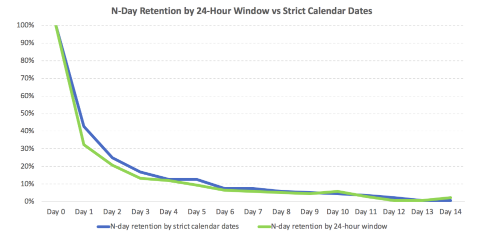 Сложный ответ: существует достаточно много способов расчёта retention, и они отличаются друг от друга разным пониманием того, каких именно пользователей считать оставшимися, и на какое количество пользователей их делить. Хороший обзор есть на AppLift, здесь retention всех образцов: full retention, classic retention, rolling retention, return retention, bracket-dependent return retention. Ознакомьтесь, это интересно.