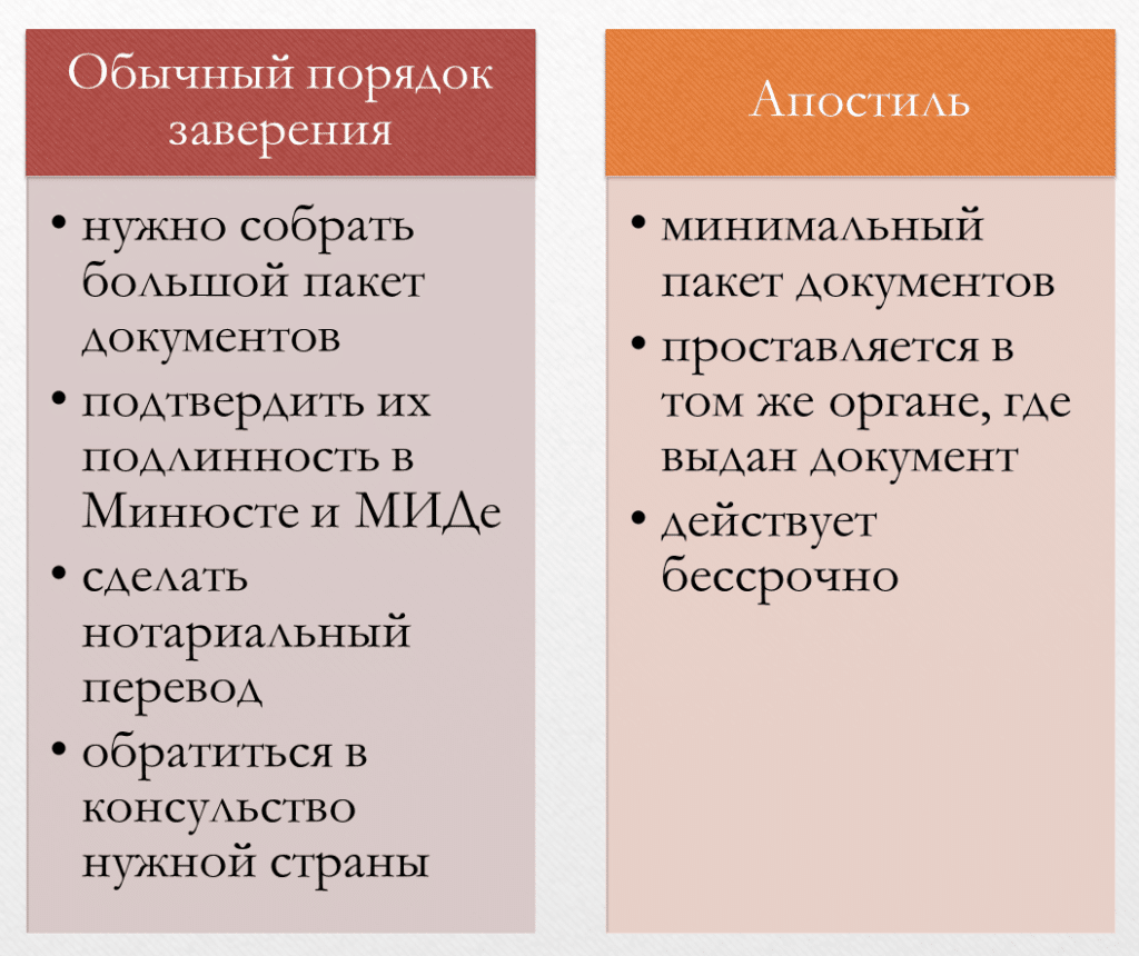 До 1961 года для подтверждения подлинности нужных бумаг приходилось проходить проверку в консульстве, однако затем вступила в действие упрощенная форма, которая фактически позволила подтверждать подлинность свидетельств и других документов – достоверность подтверждает один штамп. Это и есть апостиль для документов.