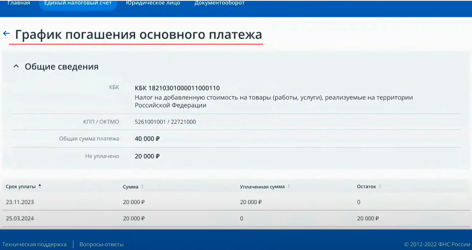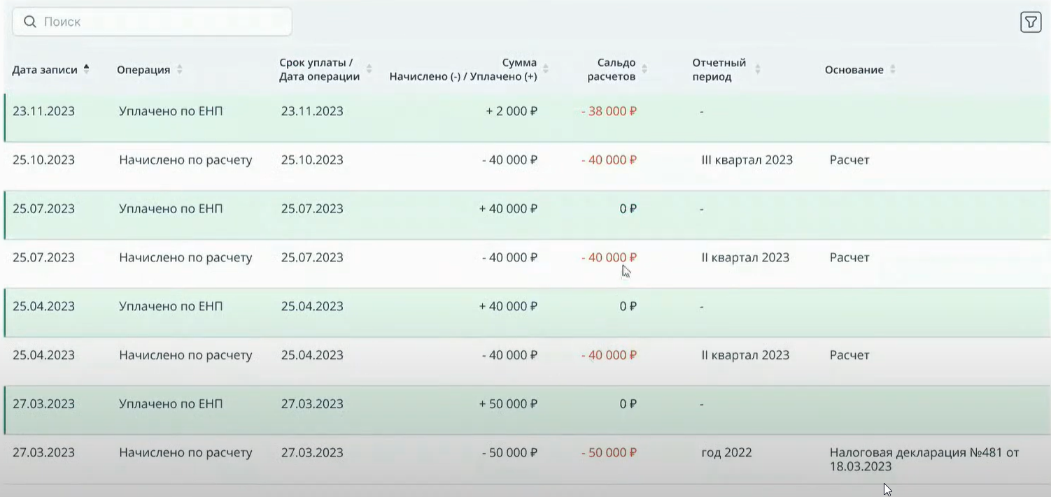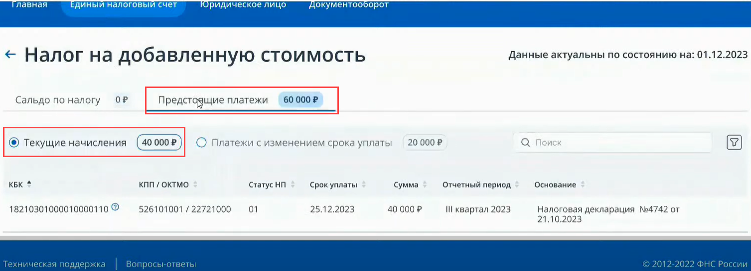 Показывает настоящее положение дел – сколько вы должны за расчетный период, есть ли у вас вообще какая-то задолженность перед государством и т.д. Также здесь отображается: