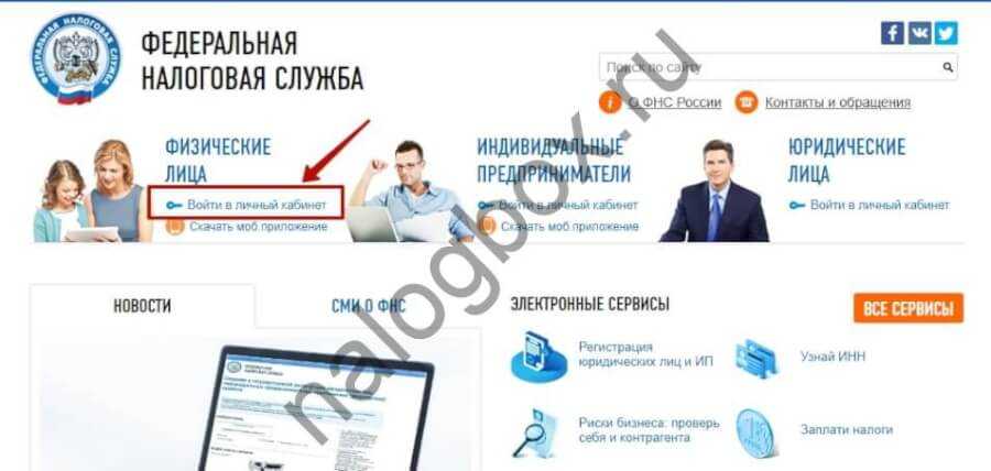 Сначала разберем, как зайти непосредственно в сам ЛК. Ссылка размещена прямо на главной странице сайта ведомства.