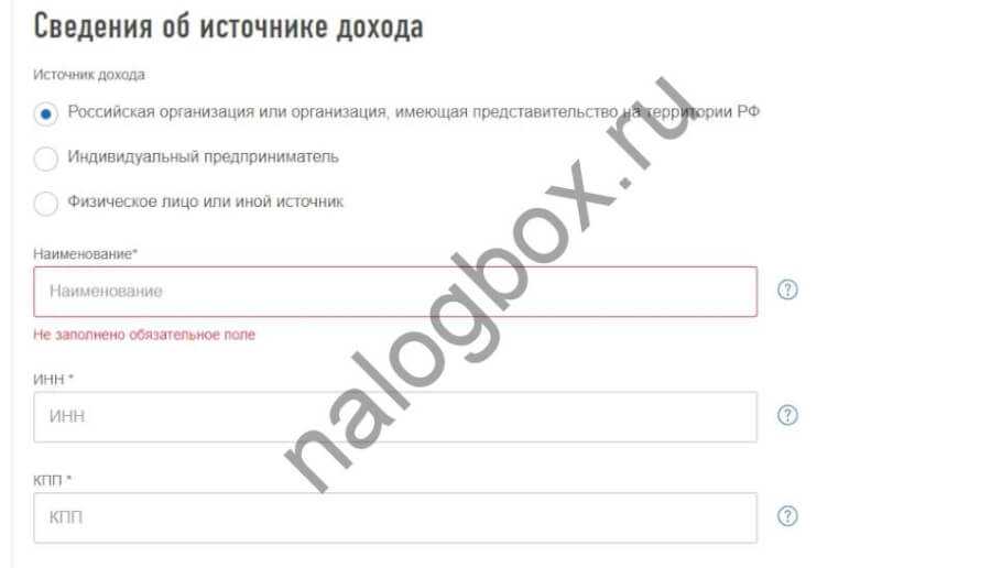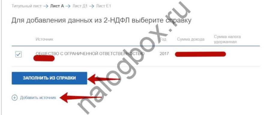 - Шаг 4. Заполняем информацию, которая непосредственно касается полученных доходов. Здесь можно выбрать уже имеющуюся в системе справку 2-НДФЛ или создать новый источник.