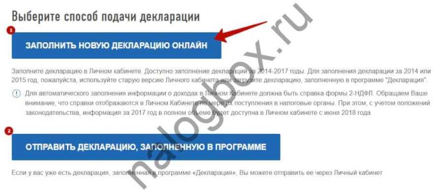 - в последнем случае можно выбрать формат подачи — заполнение онлайн или загрузка готовой формы;