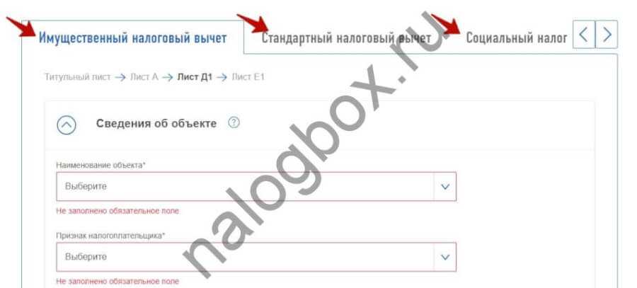 - Шаг 5. Заполняем вкладки для каждого из выбранных вычетов (этапы работы с основными вычетами приведены ниже в статье):