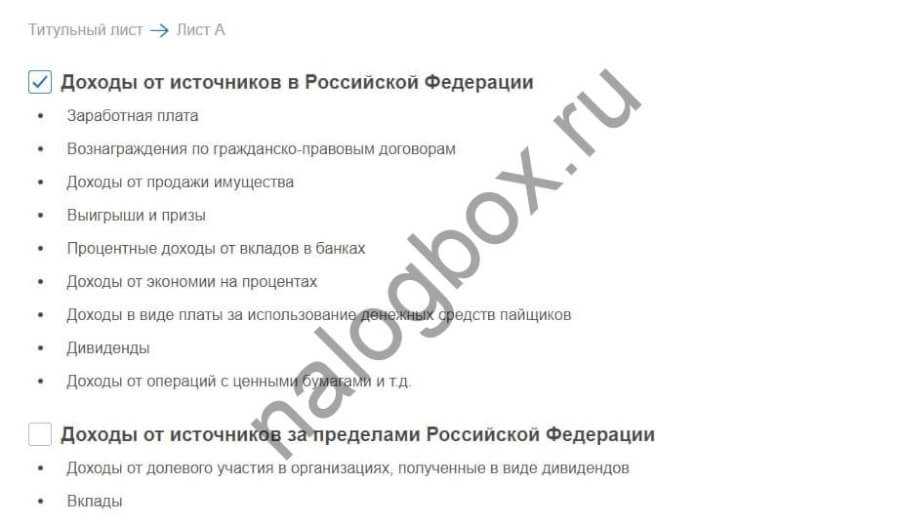 - Шаг 2. Выбираем тип доходов — в России и/или за ее пределами: