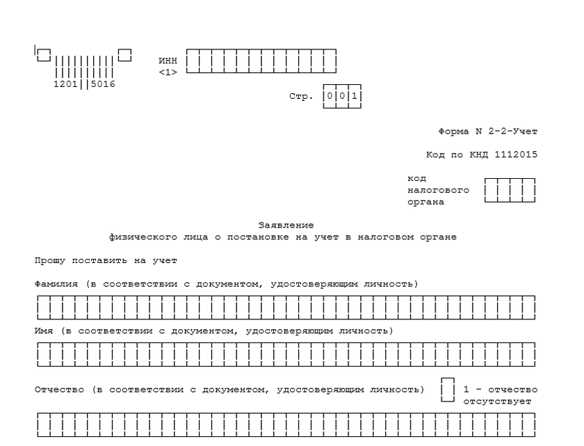 Если гражданин планирует восстановить ИНН через МФЦ или ИФНС, то бланк ему выдадут в этих организациях. При подаче заявления посредством почтового отправления гражданин должен заполнить бланк по форме «№ 2-2-Учёт» самостоятельно.