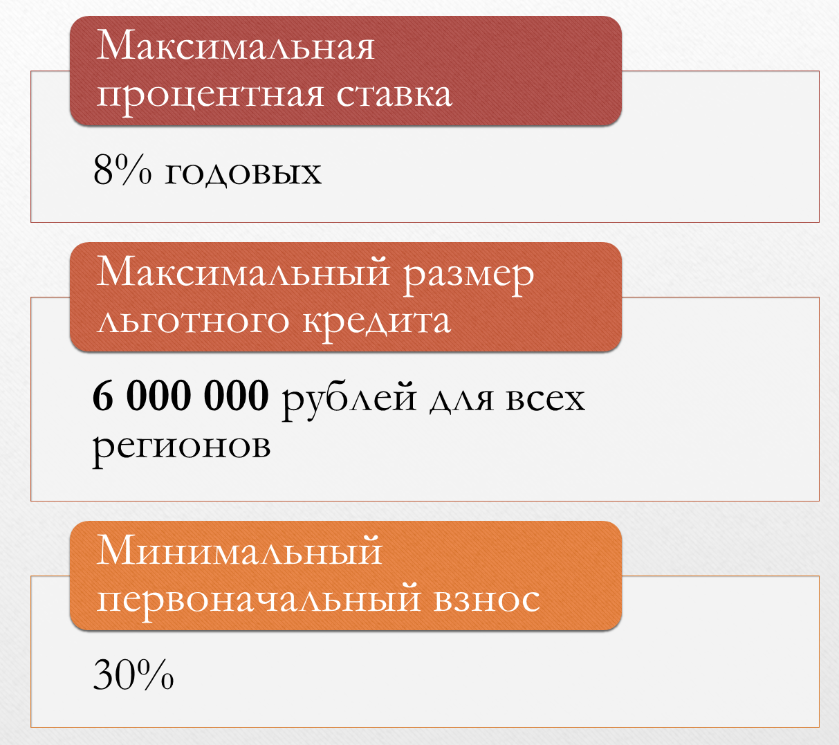 Общий принцип предоставления господдержки в сравнении с прошлым годом существенно изменился — Правительство ужесточило требования к заемщикам и ввело новые ограничения по размеру кредита (теперь 6 млн руб. для всех) и минимальному первоначальному взносу (не менее 30%).