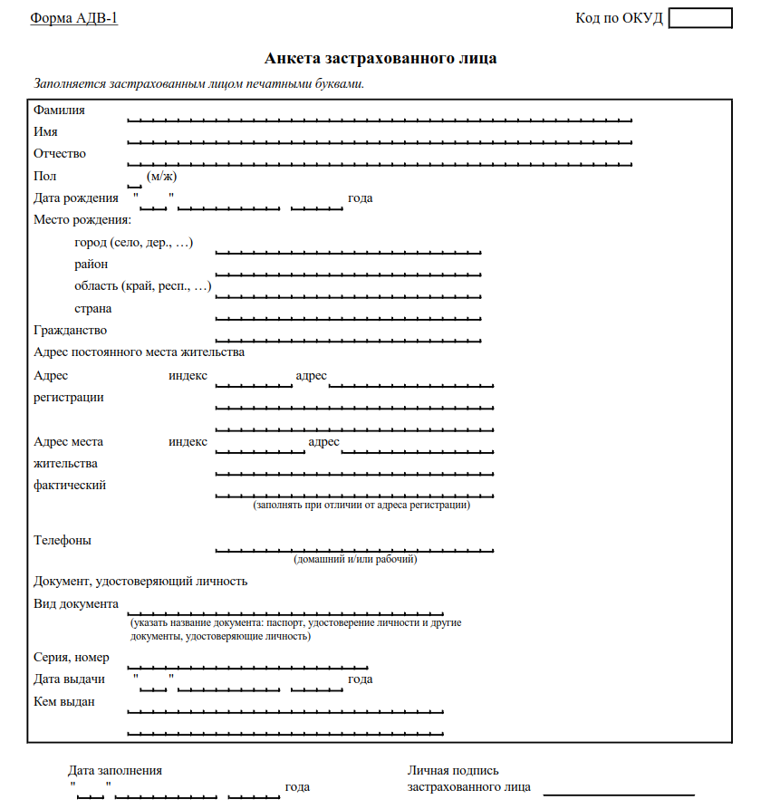 В первую очередь родителю необходимо заполнить заявку страхователя. В этой анкете мать или отец проставляют требуемые сведения о малыше.