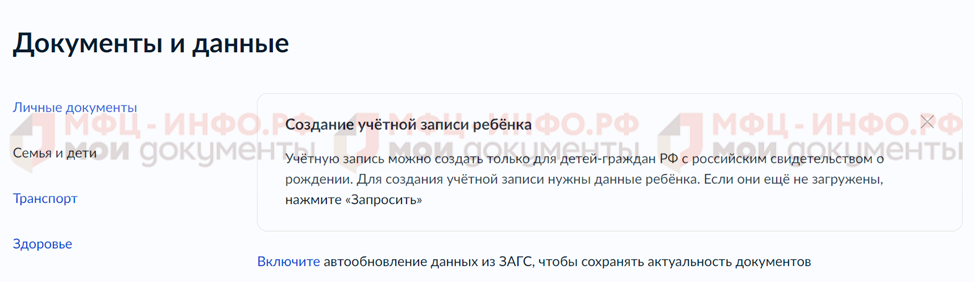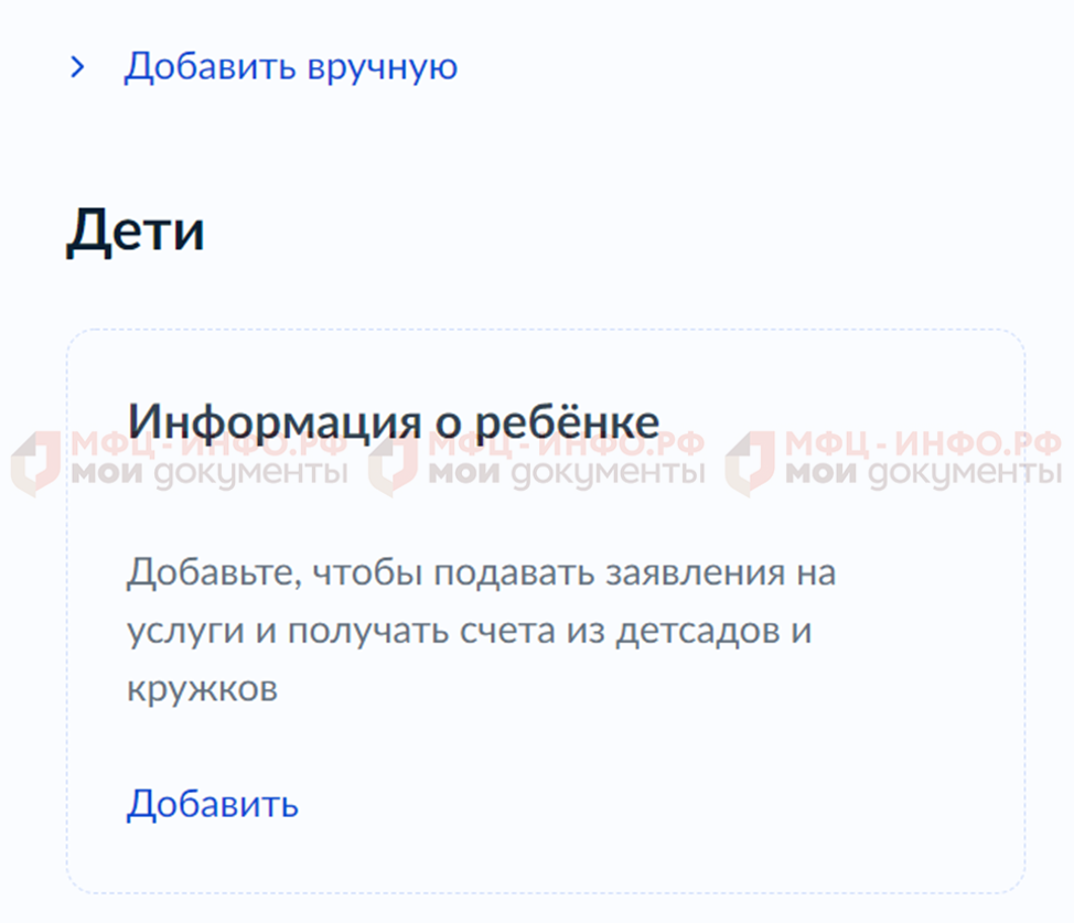 - Внести сведения о малыше, в том числе данные из медсправки о его рождении.