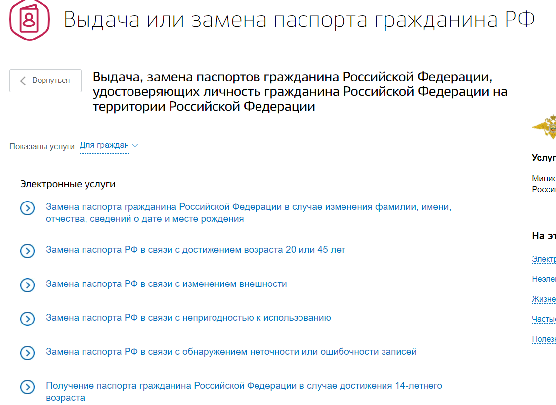 Для примера рассмотрим, как заменить паспорт на Госуслугах в 45 лет:
