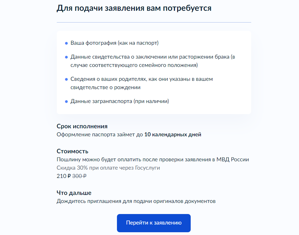 После прохождения оплаты в личном кабинете появляется приглашение в подразделение МВД, которое соответствует указанному в запросе месту жительства. При себе необходимо иметь оригиналы всех заявленных документов и стандартные фото для паспорта 35х45 мм.