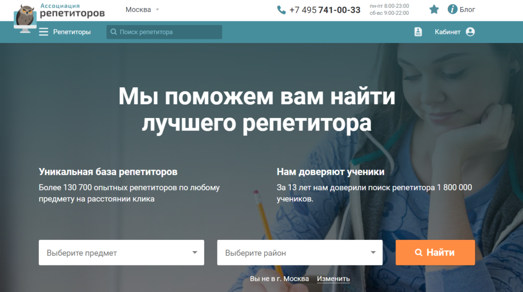 Перечисленные ниже сервисы предоставляют стандартный набор информации о репетиторах (образование, опыт, отзывы). Но каждая биржа добавляет свои собственные критерии, которые облегчают выбор достойного кандидата, повышают безопасность клиентов и качество полученного образования. В конце каждого пункта этой статьи вы найдете раздел “Фишка сайта”, который расскажет, в чем особенность именно этого сервиса и как это может помочь легко найти классного репетитора.