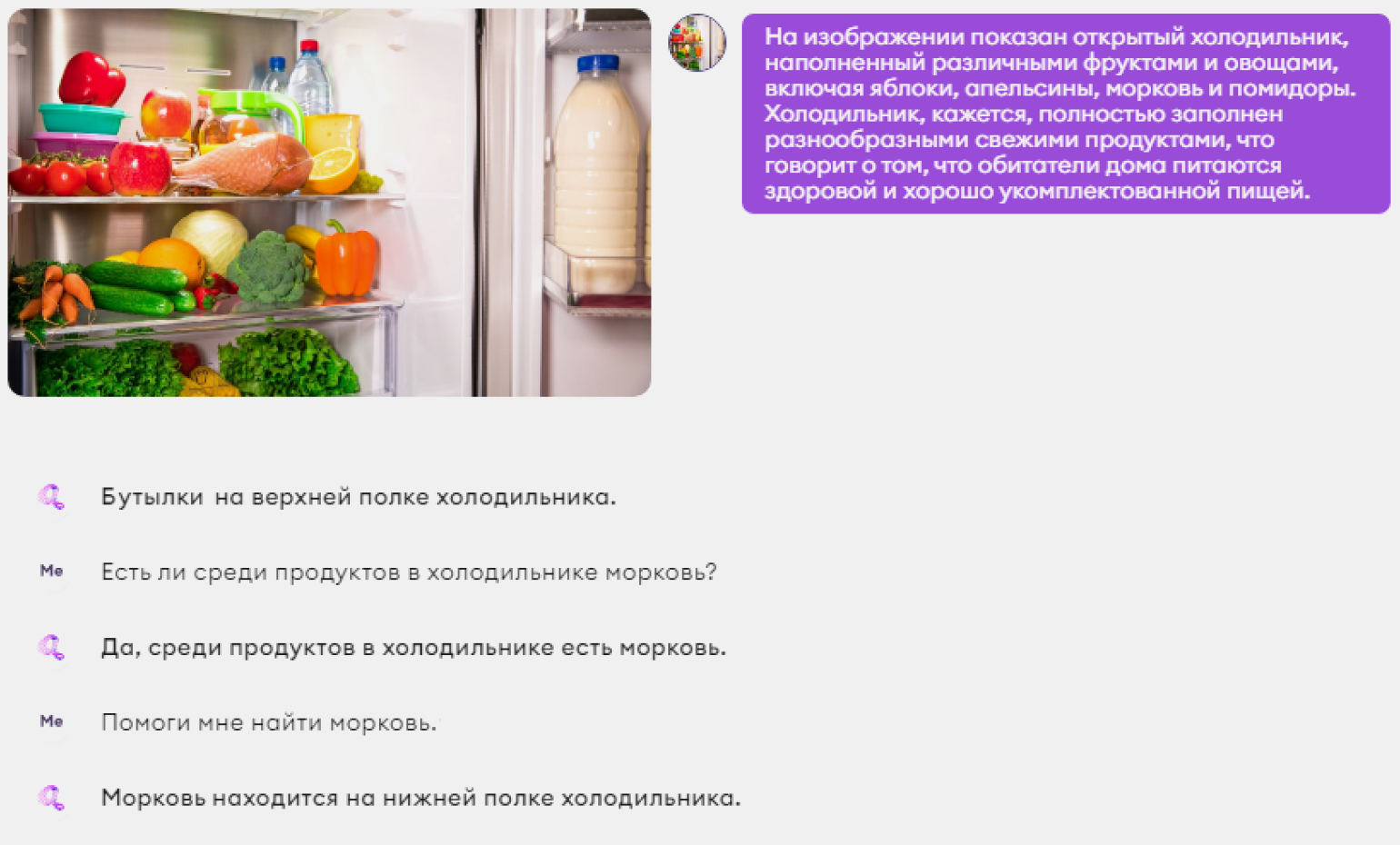 Существовавшие ранее приложения для распознавания изображений сообщали только о тех предметах, которые непосредственно находились перед камерой. Они не могли вести диалог, чтобы понять, есть ли в лапше те или иные ингредиенты или представляет ли объект опасность для пользователя, чтобы сообщить об этом».