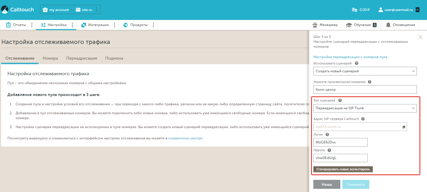 Возможности при редактировании полностью аналогичны настройкам при создании сценария переадресации на шаге 3 добавления нового пула на табе Отслеживание.