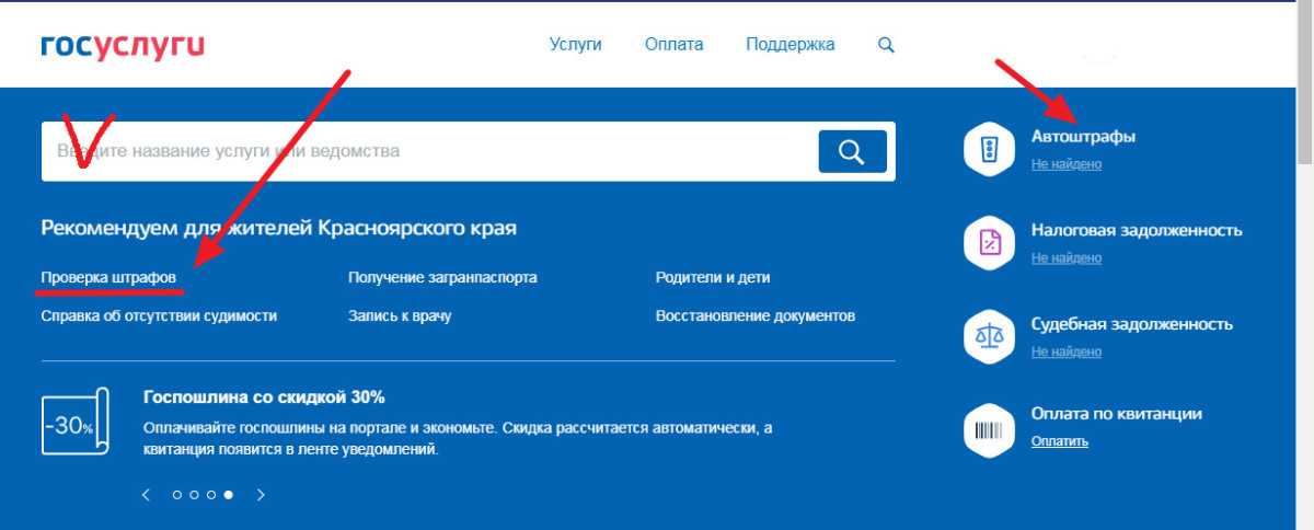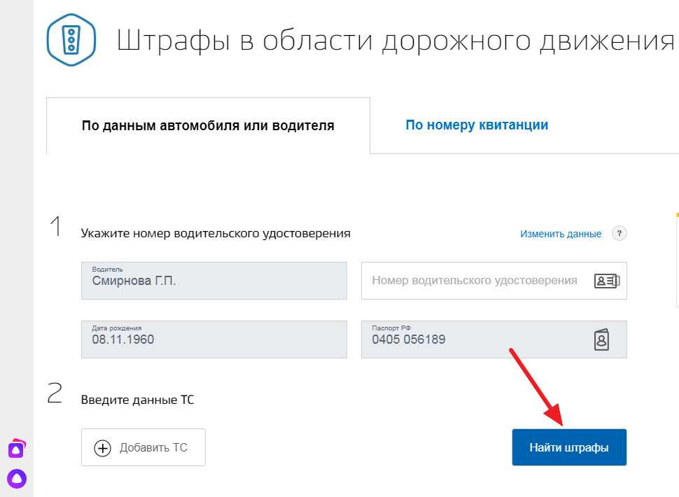 - Найти соответствующий раздел в перечне услуг. Если при заполнении профиля вводились данные водительского удостоверения и сведения о транспортном средстве, то информация выдастся автоматически. В противном случае придется редактировать профиль.