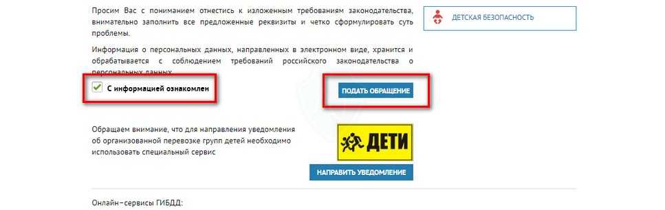 2. Внимательно прочитайте инструкцию и внизу отметьте галочку о том, что ознакомлены с информацией и кликните на ссылку «Подать обращение».