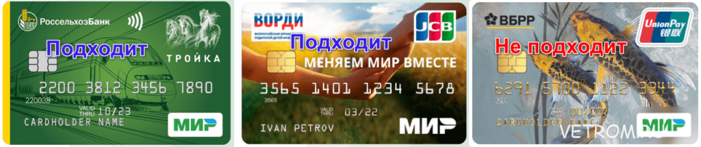 Важно чтобы карты была не кобейджинговая. То есть на ней не должно быть написано никаких других платёжных систем, кроме МИР