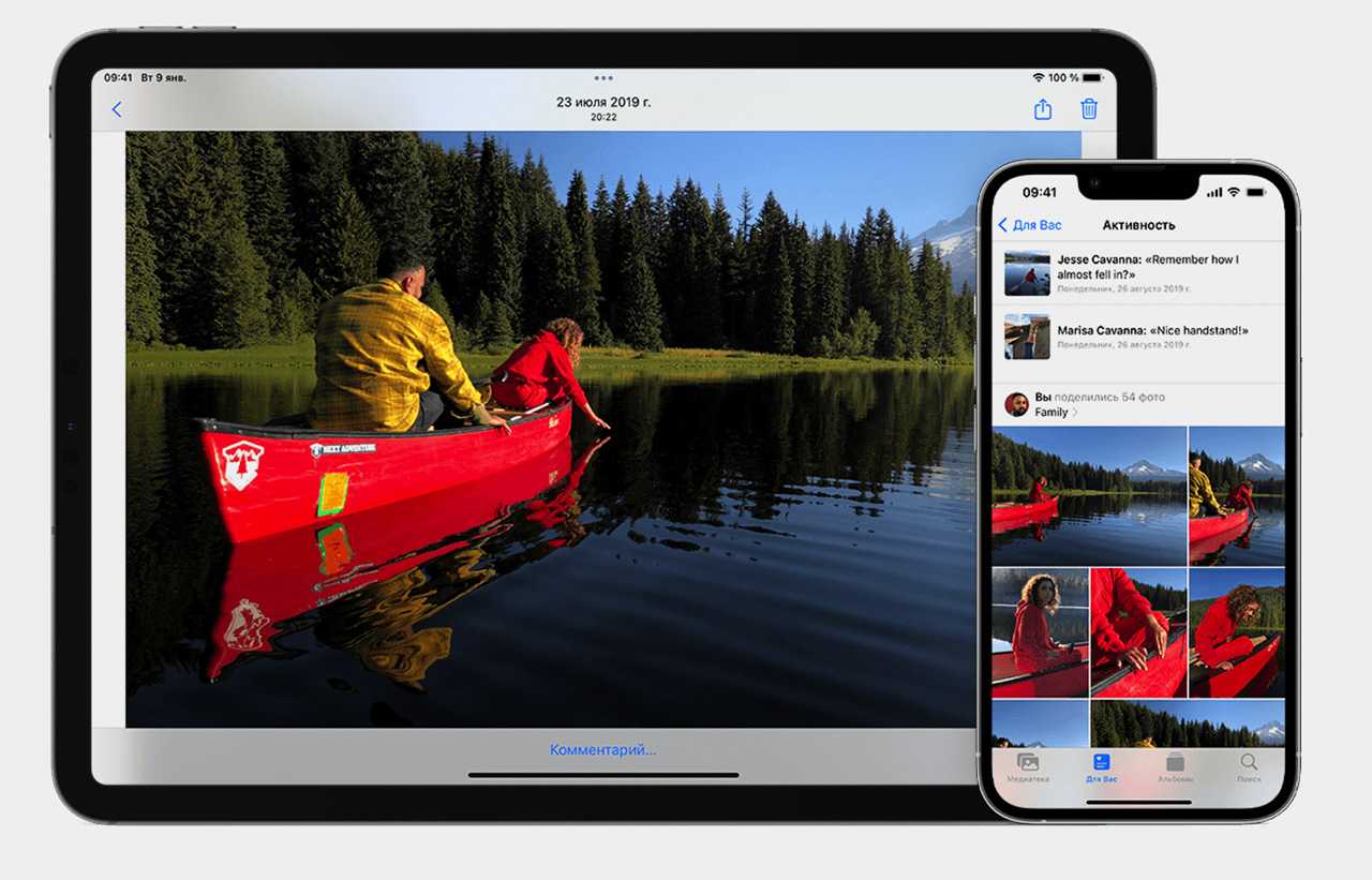 Чтобы делиться фото и видео с друзьями, родственниками и вообще кем угодно, в приложении ««Фото» на вашем iPhone можно создать специальный альбом, в который копируешь нужные фотографии и отсылаешь ссылку на этот альбом другому человеку. Этот человек кликает на ссылку и в его приложении «Фото» появляется этот альбом с вашими фото.