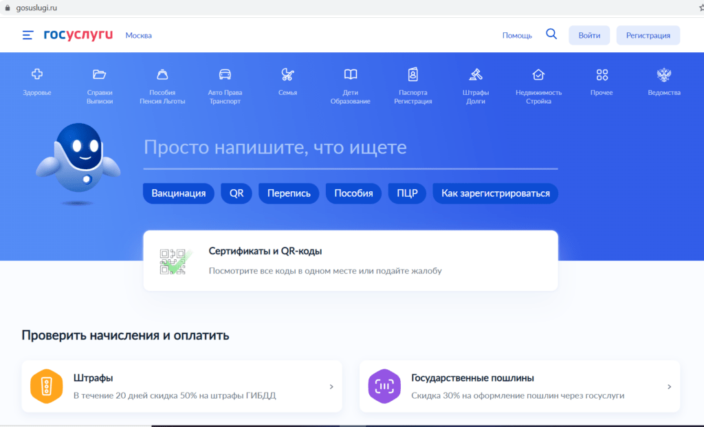 - Зайдите на портал Госуслуг – https://www.gosuslugi.ru/.
