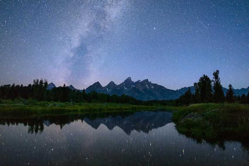 С помощью широкоугольного объектива можно фотографировать созвездия ночью, когда Млечный Путь освещает пейзаж. Я рассказывал об этом в этой статье.