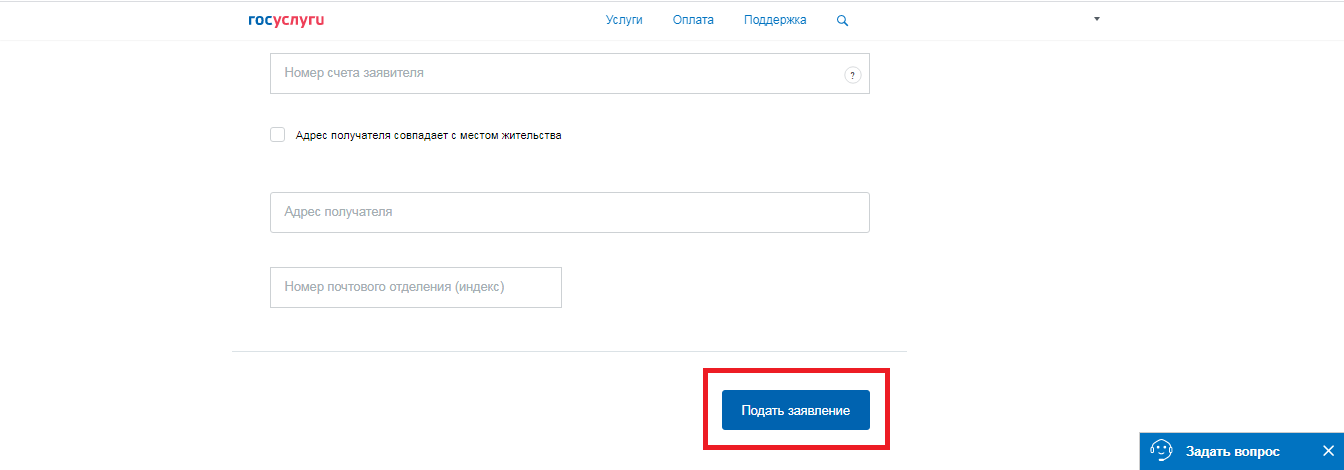 - Вводят номер банковского счета и реквизиты финансового учреждения, выдавшего карту. Сведения необходимы для получения пособия.