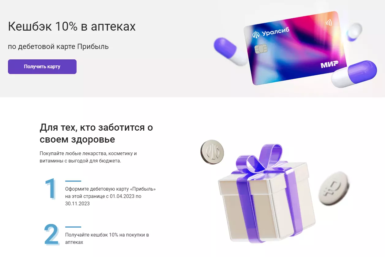 Дебетовая карта Прибыль от Уралсиба — кэшбэк 10% во всех аптеках