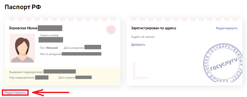 Чтобы поменять паспортные данные – кликните на “Подробнее”. В новой вкладке найдите слева внизу на новой странице “Редактировать” и нажмите на ссылку.