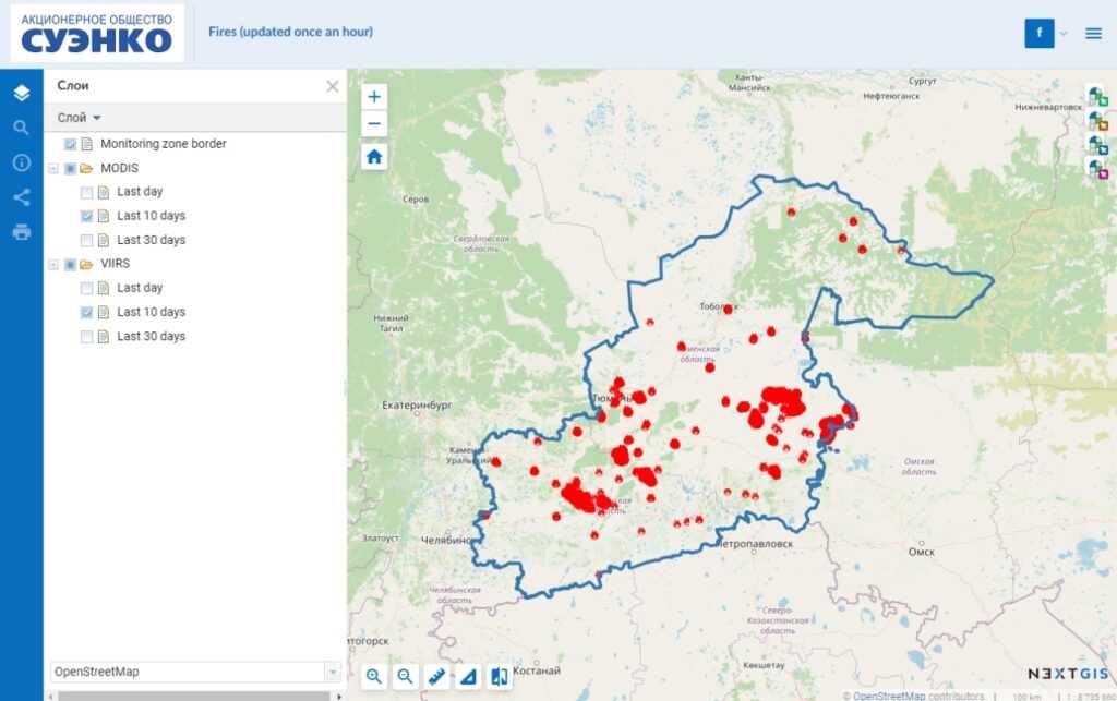 Сервис помогает в мониторинге пожаров. Ежедневно в пожароопасный сезон или когда поступает запрос из отдела охраны, мы проверяем карты на предмет появления новых очагов. Это не единственный источник, но он показывает возгорания относительно границ участков, буферных зон и прилегающих территорий. Так что мы всегда можем оценить расстояние от каждого возгорания до нашей территории.