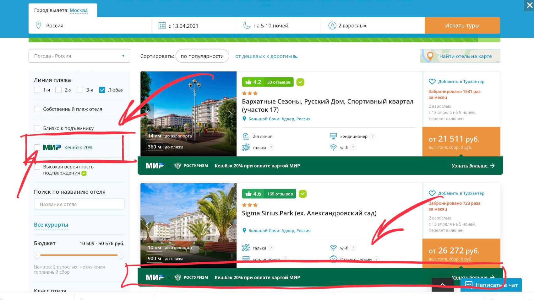 - Покупаете тур, круиз или отель где угодно в России по карте Мир (это обязательное условие) за полную стоимость