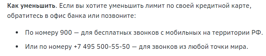 Тогда необходимо будет просить банк снизить лимит до необходимого. Сделать это можно любым удобным способом: