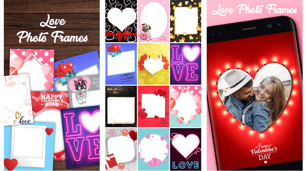 Гораздо более простое приложение, без претензий на внимание, мы находим в приложении Valentine’s Photo Frames, которое это только позволяет нам добавить рамку к фотографиям которым мы хотим поделиться с нашим партнером. Разработчик: