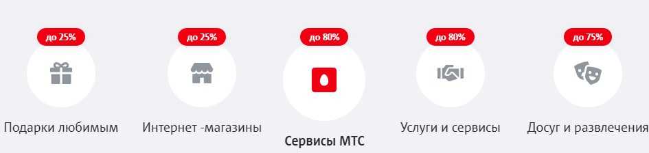 МТС CashBack подключена к бонусной программе с аналогичным названием. Поэтому с ее помощью можно приобретать товары и услуги, после чего получать возврат средств в виде баллов. Полагается 1% за любые покупки и 5% за приобретение товаров и услуг в категориях «Супермаркеты», «Кино» и «АЗС». Также можно получить до 25% кэшбека, если найти выгодное предложение от партнера на сайте программы.