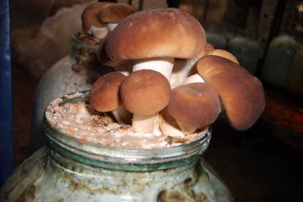 Если у человека нет собственного огорода, он может выращивать грибы в банках. Для этого нужно на треть залить их отрубями, а остальное засыпать опилками с деревьев. Сверху посыпать мукой и крахмалом. Полученную смесь заливают водой и хорошо кипятят. Процесс кипячения продолжается до тех пор, пока большая часть жидкости не превратится в пар, затем банки охлаждают.