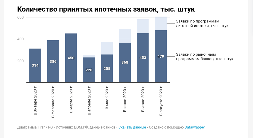 Август уже официально стал рекордным для отечественного рынка ипотеки — тогда выдали 148 тысяч жилищных кредитов на 375 миллиардов рублей (данные «Дом.рф» и агентства Frank RG). Предыдущий абсолютный рекорд был установлен в июле, когда россияне набрали ипотеки на 362 миллиарда рублей.