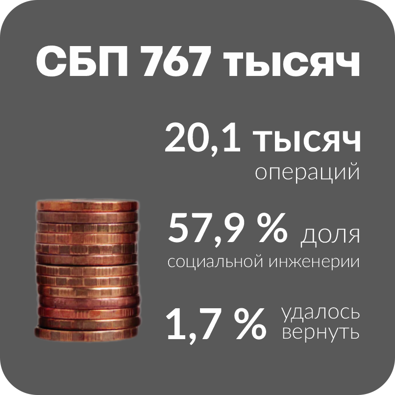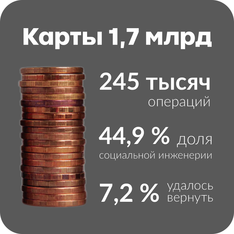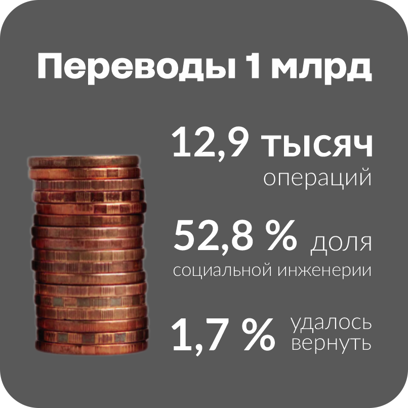Чаще всего речь идет о схемах с использованием банковских карт, через них мошенники вывели более 1,7 млрд рублей. Более миллиарда рублей люди отдали, сделав перевод. Около 700 млн рублей жертвы отправили по СБП. Также мошенники похищали деньги через электронные кошельки и вообще не используя какие-либо счета.