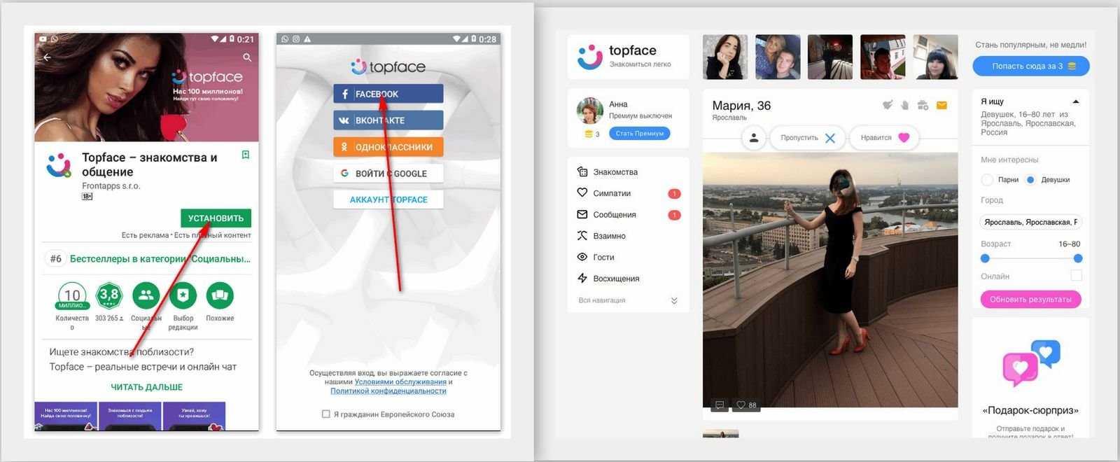 Сейчас количество пользователей «Topface», проживающих в разных странах мира, превысило 70 миллионов. А чтобы войти, даже не нужно регистрироваться. Для авторизации используйте уже имеющийся аккаунт в «Facebook», «Одноклассниках» или «ВКонтакте».